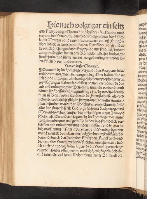 Wenediger Chronica : Mit angezögte[n] vrsache[n] des schädliche[n] Kryegs, do mit sye bitzhär vo[n] Römischer Key. Maiestät so schwärlich gestrafft seind / [Verfasser: Jean Lemaire de Belges ; Übersetzer Nicolas Mengin]