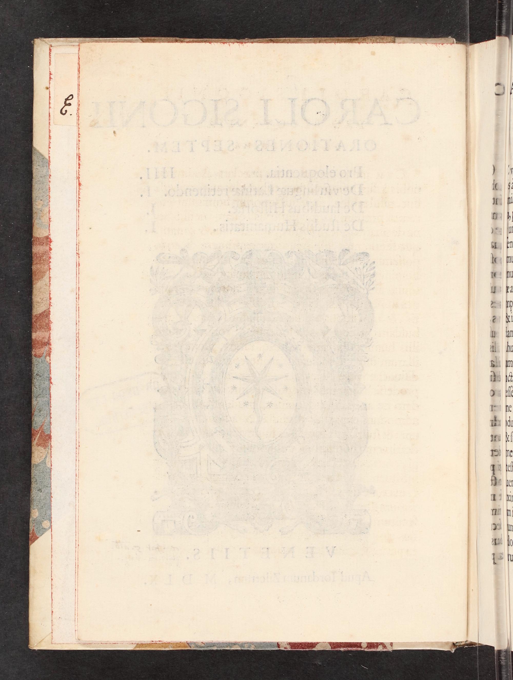Caroli Sigonii Orationes Septem. Pro eloquentia. IIII. De vsu linguæ Latinæ retinendo. I. De laudibus historiæ. I. De studijs Humanitatis. I