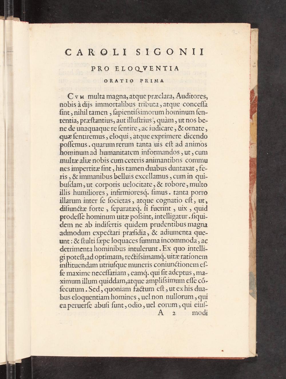 Caroli Sigonii Orationes Septem. Pro eloquentia. IIII. De vsu linguæ Latinæ retinendo. I. De laudibus historiæ. I. De studijs Humanitatis. I