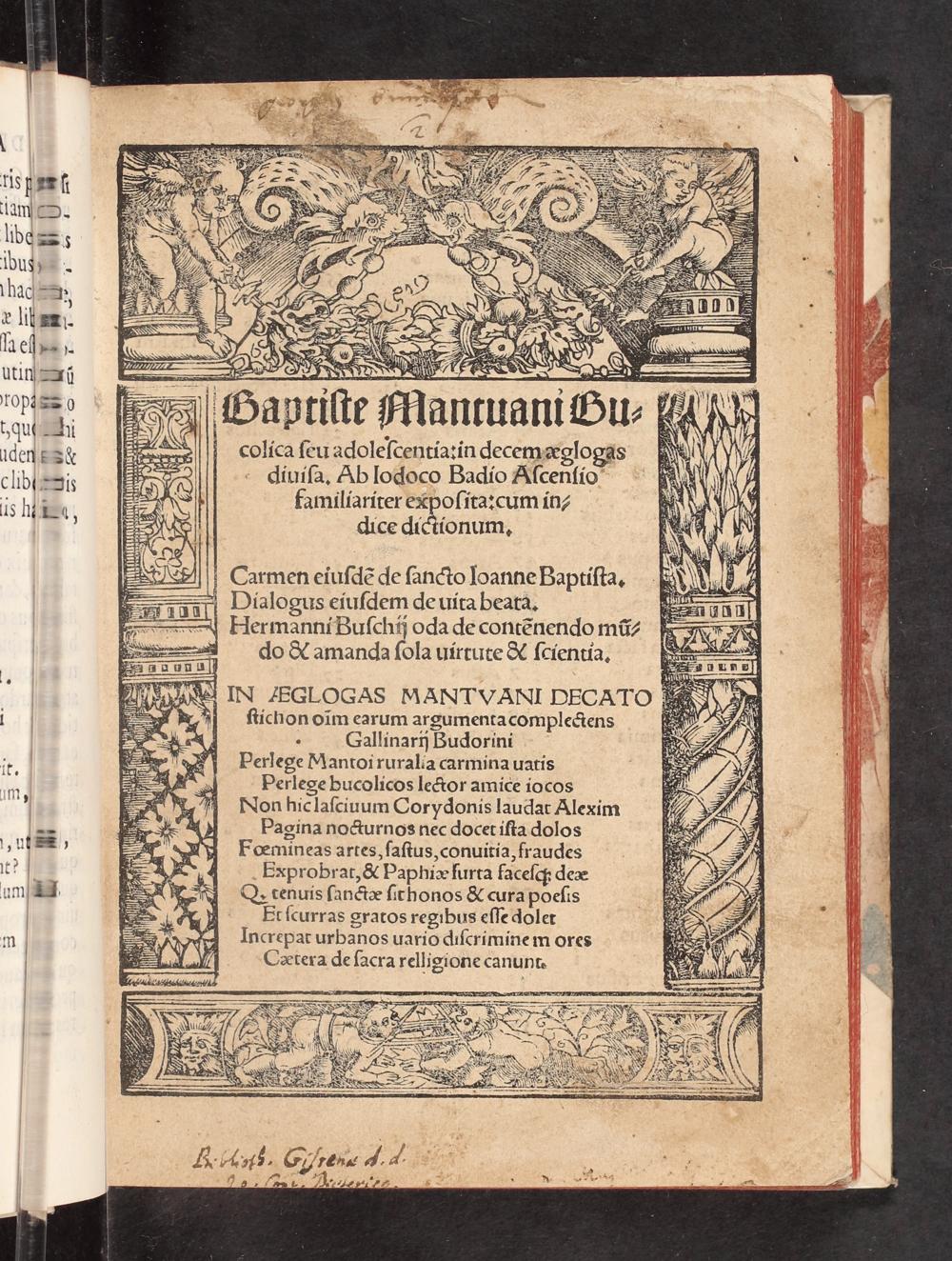 Baptiste Mantuani Bucolica seu adolescentia:in decem aeglogas diuisa.Ab Iodoco Badio Ascensio familiariter exposita:cum indice dictionum. Carmen eiusdẽ de sancto Ioanne Baptista.Dialogus eiusdem de uita beata. Hermanni Buschij oda de contẽnendo mũdo & amanda sola uirtute & scientia.