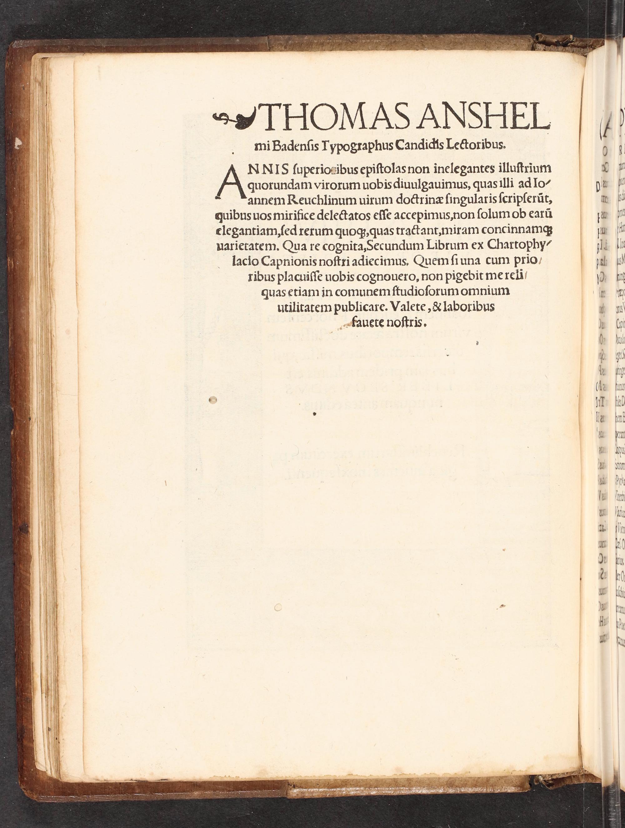 Illustrivm Virorvm Epistolæ, Hebraicæ, Græcæ Et Latinæ, ad Ioannem Reuchlin Phorcensem, virum nostra ætate doctissimum diversis temporibus missæ, quibus iam pridem additus est Liber Secvndvs nunquam antea editus : Reuchlinistarum exercitum pagina inuenies moxsequenti