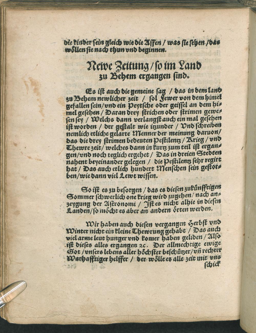 Gar wunderbarliche erschreckliche/ vnd seltzame Newe Zeitung/ Geschehen in einem Dorff/ nahent bey S. Annaberg ge-legen/ im M.D.XL. jar