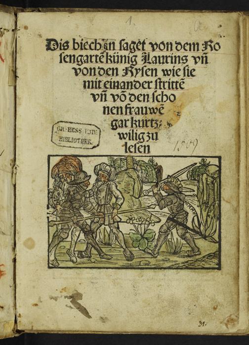 Dis biechlin saget von dem Rosengarte[n] künig Laurins vn[d] von den Rysen wie sie mit einander stritte[n] vn[d] vo[n] den schonen frauwe[n] gar kurtz-wilig zu lesen