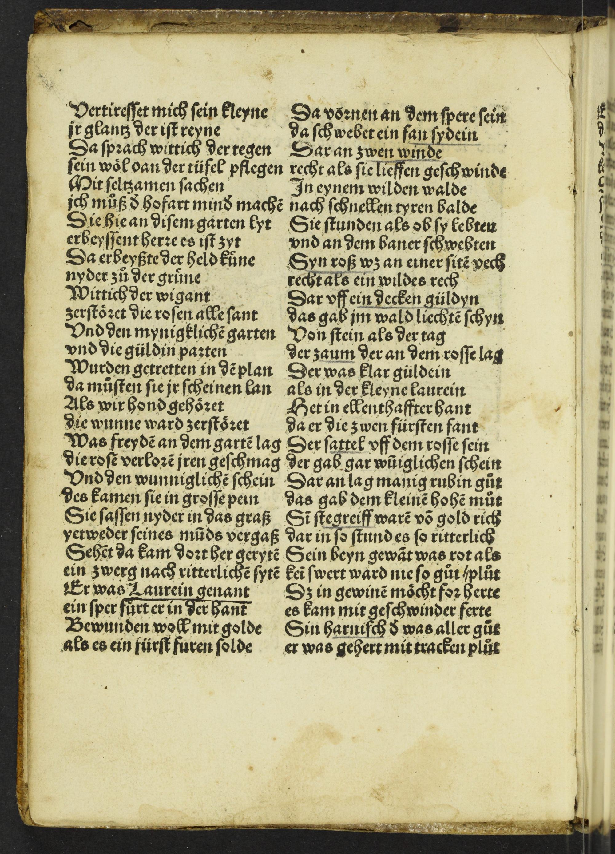 Dis biechlin saget von dem Rosengarte[n] künig Laurins vn[d] von den Rysen wie sie mit einander stritte[n] vn[d] vo[n] den schonen frauwe[n] gar kurtz-wilig zu lesen