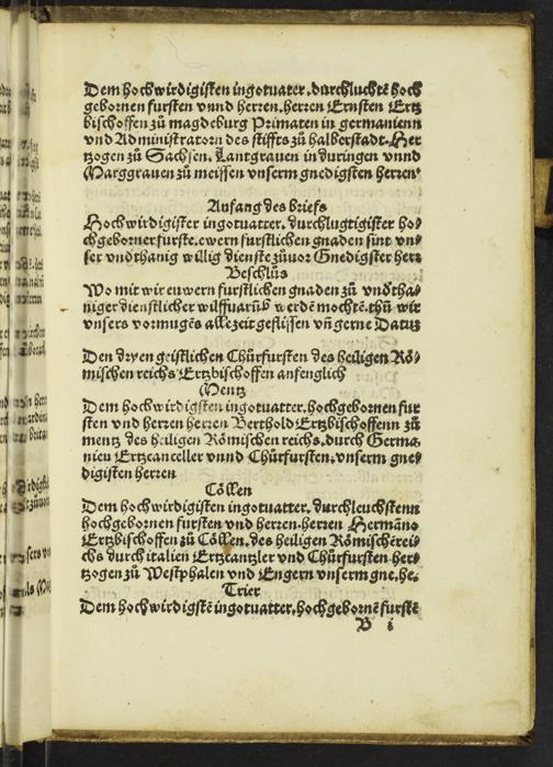 Jn disem büchlin vindet man gar Clarliche[n] Die Tittel oder die Oberschriffte aller Stende, Anfang vnd Beschluß der Briefe, Auch die sitte[n] die ein yeder Cantzellienschreyber an ym sol haben, vff latinisch, vnd volget hernach zu Teütschem, mit anhang eines Krichischen gerichtes anzeigent den schatz eynes yeden gelerte[n] redners