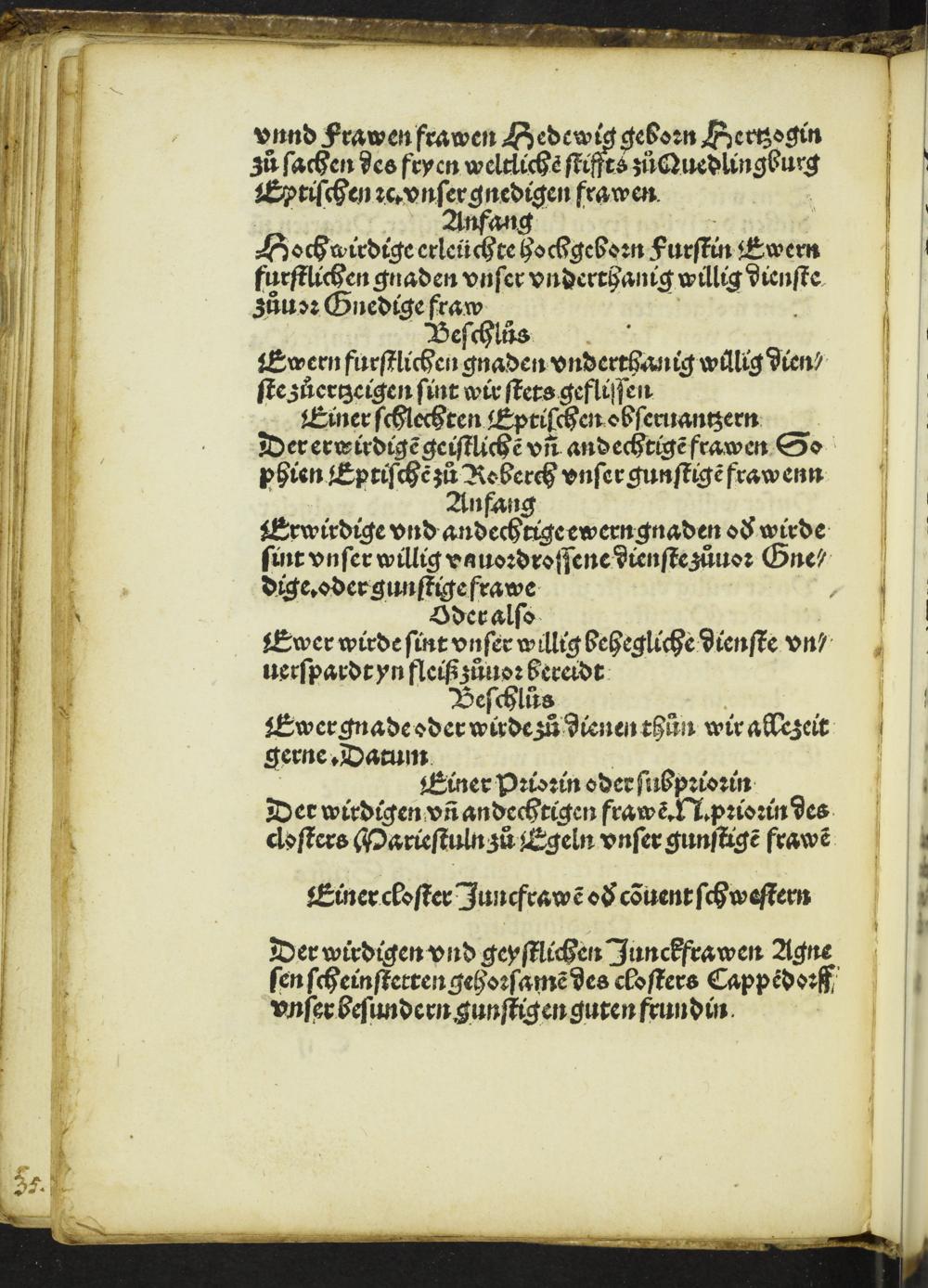 Jn disem büchlin vindet man gar Clarliche[n] Die Tittel oder die Oberschriffte aller Stende, Anfang vnd Beschluß der Briefe, Auch die sitte[n] die ein yeder Cantzellienschreyber an ym sol haben, vff latinisch, vnd volget hernach zu Teütschem, mit anhang eines Krichischen gerichtes anzeigent den schatz eynes yeden gelerte[n] redners