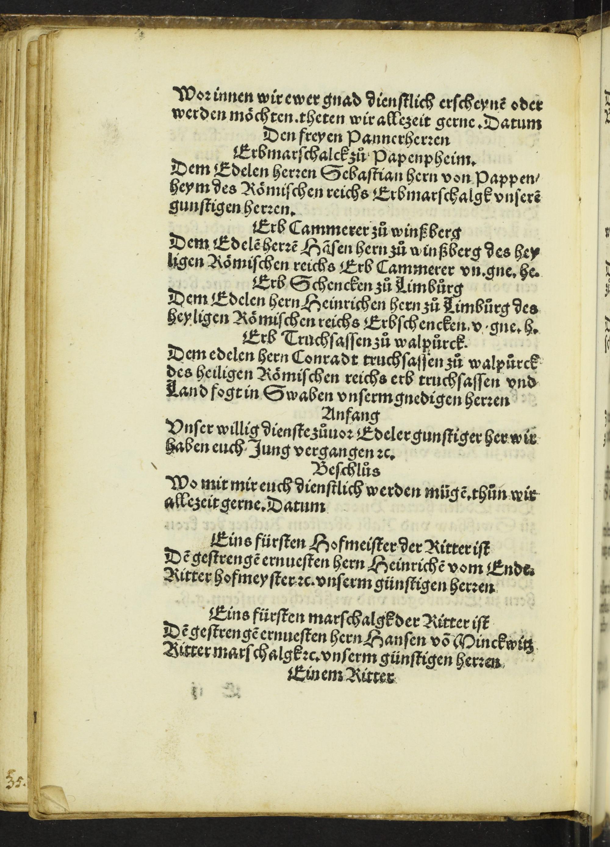 Jn disem büchlin vindet man gar Clarliche[n] Die Tittel oder die Oberschriffte aller Stende, Anfang vnd Beschluß der Briefe, Auch die sitte[n] die ein yeder Cantzellienschreyber an ym sol haben, vff latinisch, vnd volget hernach zu Teütschem, mit anhang eines Krichischen gerichtes anzeigent den schatz eynes yeden gelerte[n] redners